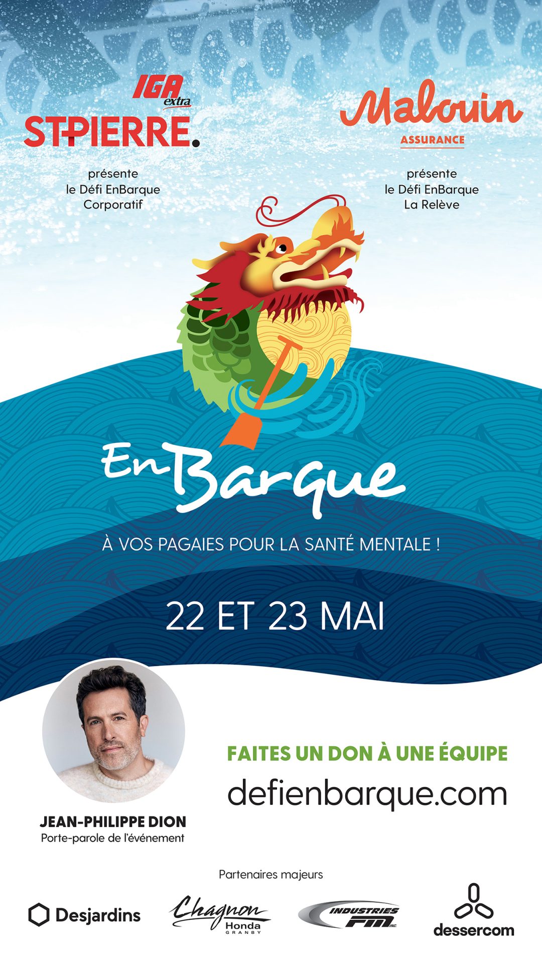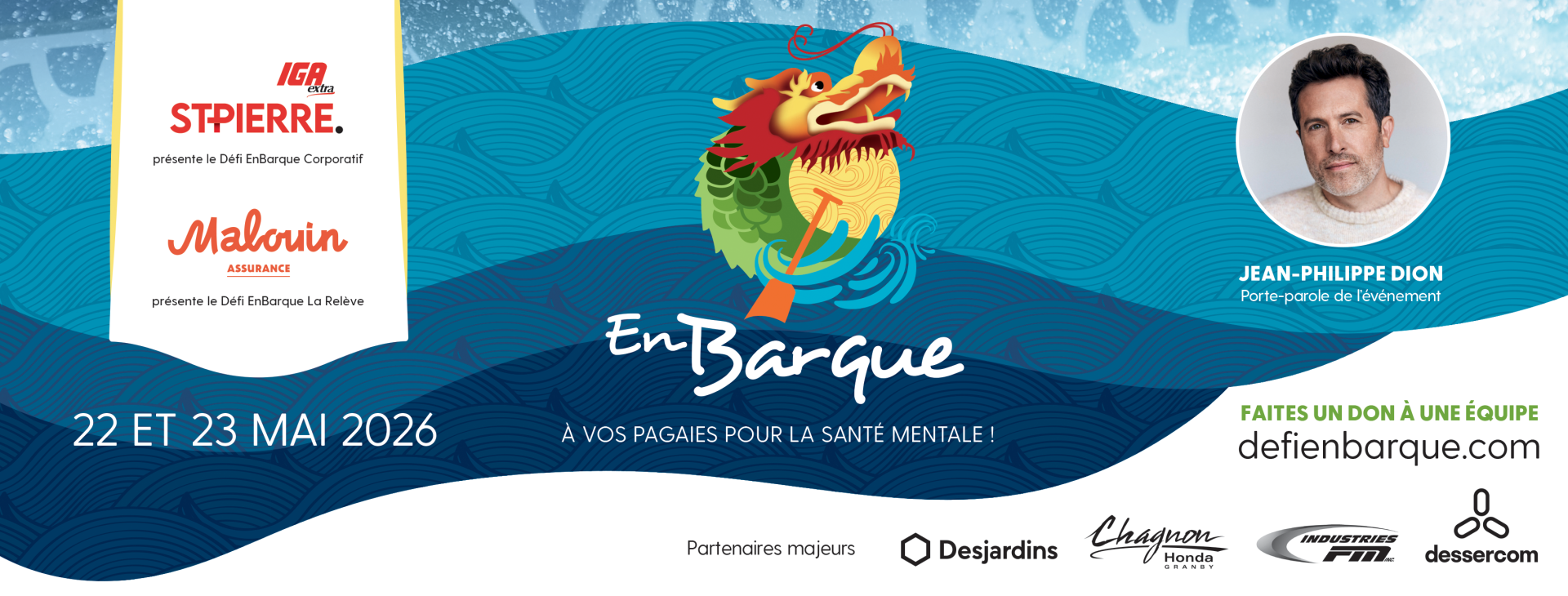 Cette année, je suis fier.ère de participer au Défi EnBarque, l’unique course de bateaux-dragons au Québec dédiée à la santé mentale!