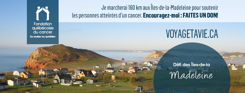 Nous mettons à votre disposition une image de couverture Facebook pour informer votre entourage de votre participation au Défi des Îles-de-la-Madeleine. Il vous sera ainsi plus aisé de solliciter leur générosité! N’oubliez pas également de créer des publications : expliquez pourquoi vous avez choisi de vous impliquer, diffusez des photos de vous pendant que vous vous entraînez en prévision du voyage, faites un décompte avant votre départ, etc.